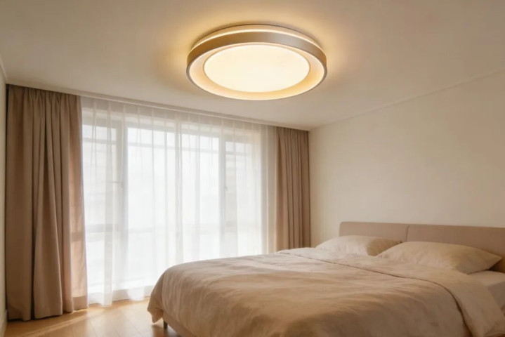 全换 4000K 以下暖光灯具,避免冷光刺眼。客厅、卧室选防眩光吸顶灯,比如喜临门的适老照明系列,光线柔和不直射眼睛。